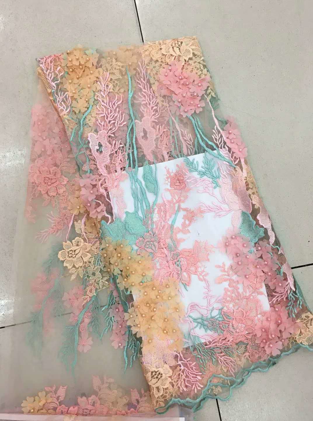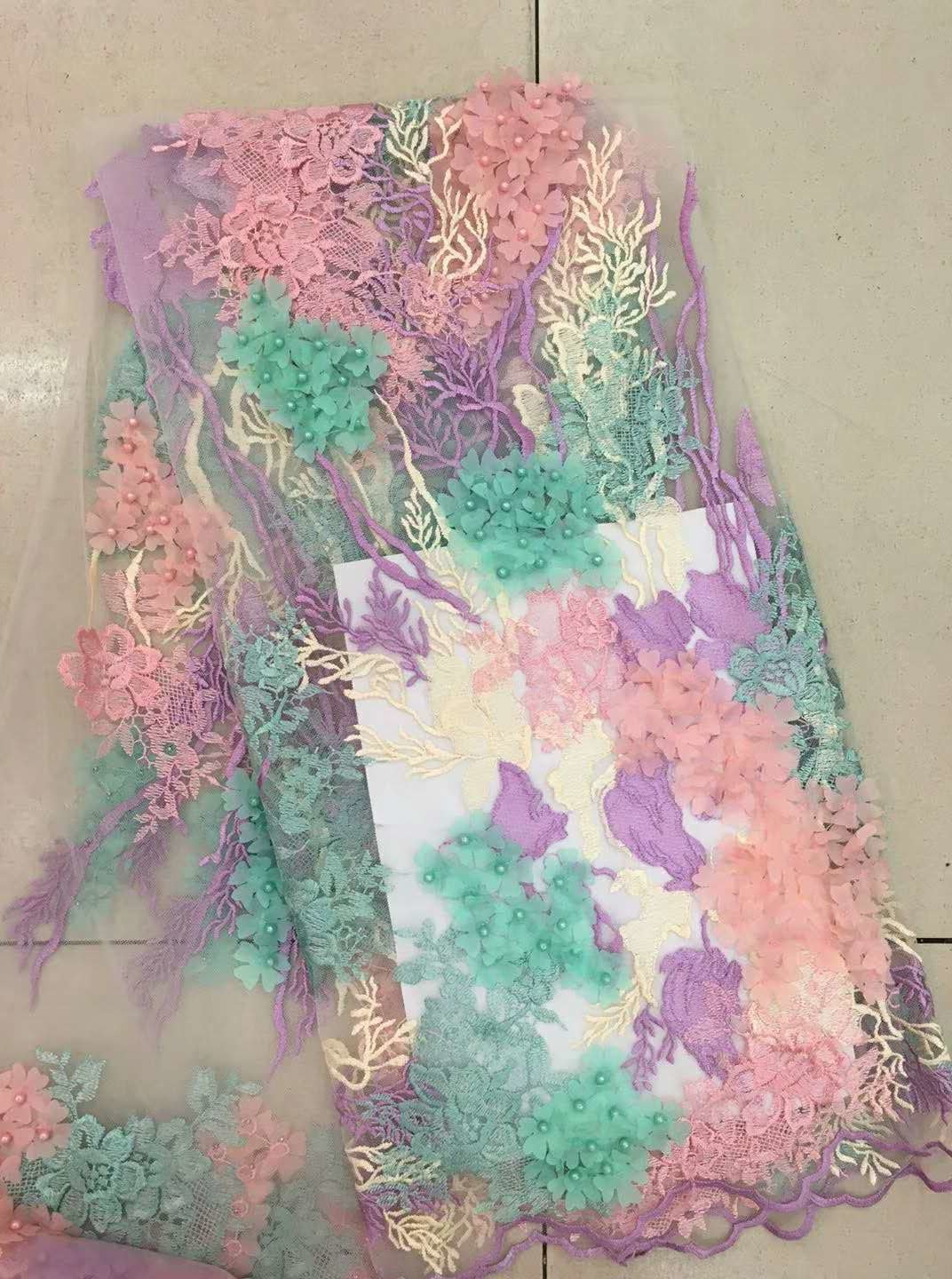 3डी मनके फीता फैब्रिक, स्कैलप्ड मल्टी कलर फ्लोरल कढ़ाई वाला फैब्रिक स्कर्ट के लिए दुनिया भर के 30 से अधिक देशों में लोकप्रिय हैं