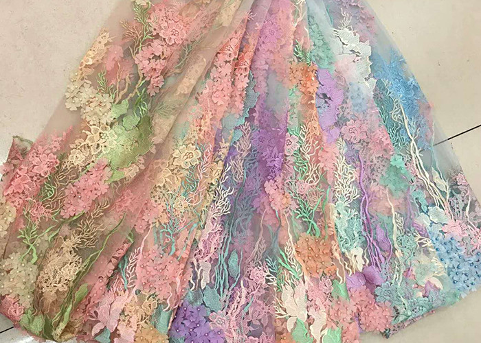 3डी मनके फीता फैब्रिक, स्कैलप्ड मल्टी कलर फ्लोरल कढ़ाई वाला फैब्रिक स्कर्ट के लिएचुने हुए प्राकृतिक, प्रदूषण मुक्त, उच्च गुणवत्ता वाली सामग्री
