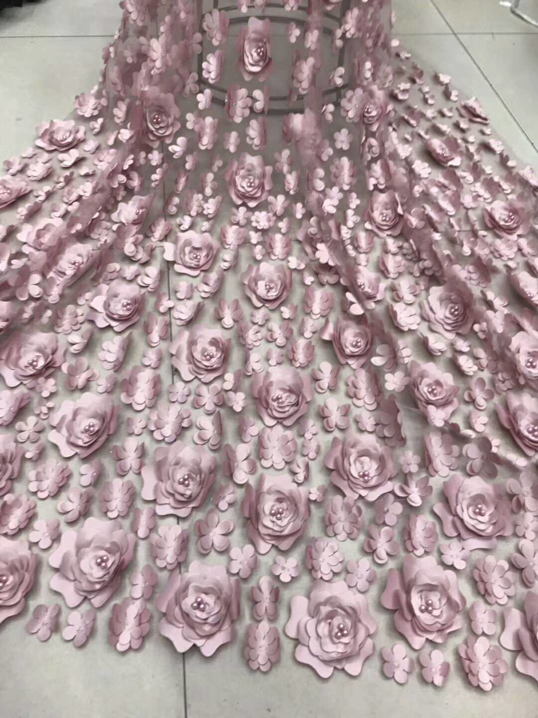 3 डी कढ़ाई फूल मोती फीता कपड़े फैशन शाम के कपड़े पोशाक जाल कपड़े
